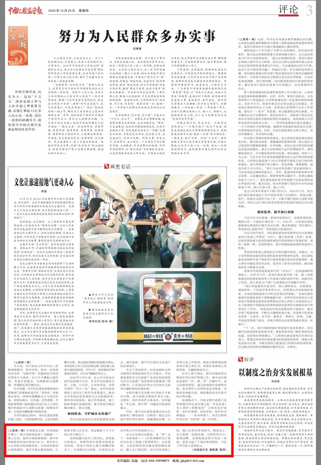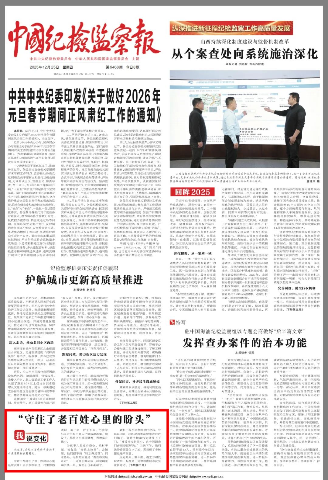 《中国纪检监察报》头版刊文:“守住了老百姓心里的盼头”